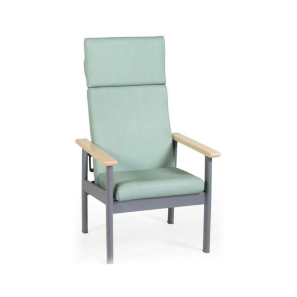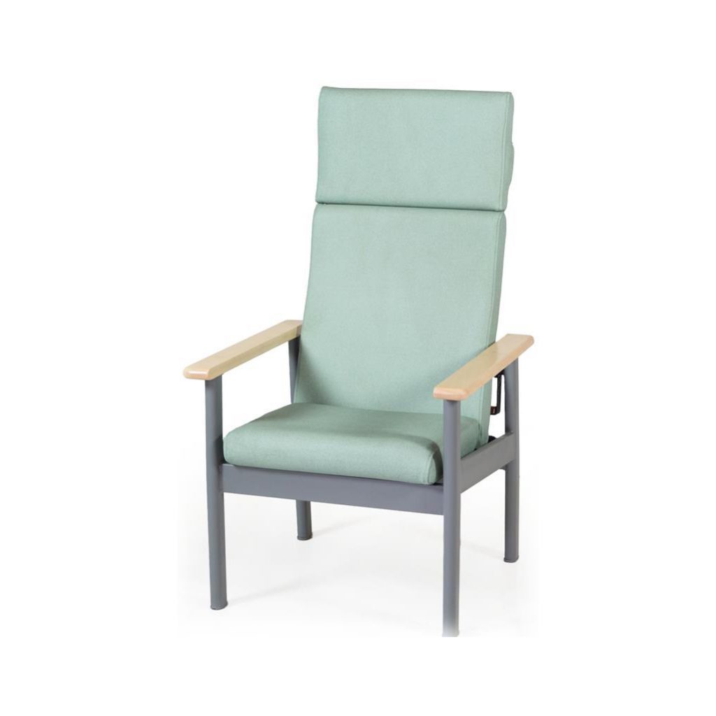 Sillón ergonómico de respaldo alto, fijo, con suplemento basculante en el respaldo.