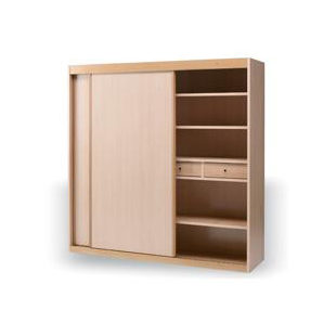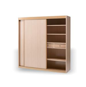 Armario elaborado en tablero chapado en haya. Con zócalo inferior.