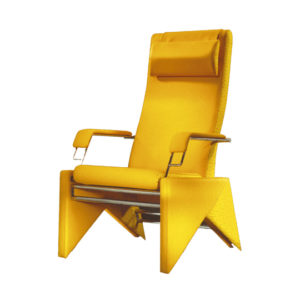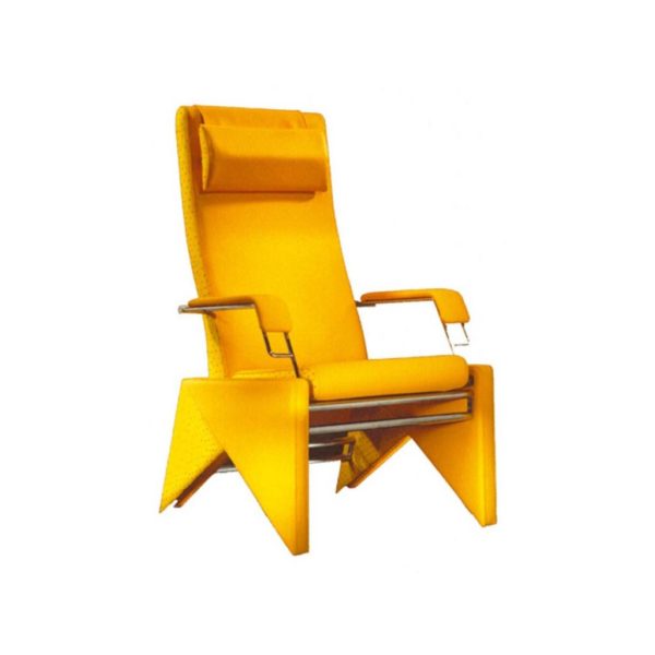 • Reposabrazos de acero inoxidable, con parte superior acolchada y tapizada, sincronizados con el movimiento de reclinación del respaldo.