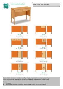 Escritorio fabricado en tablero chapado en haya. Tapa chapada en estratificado con cantos macizos en haya.