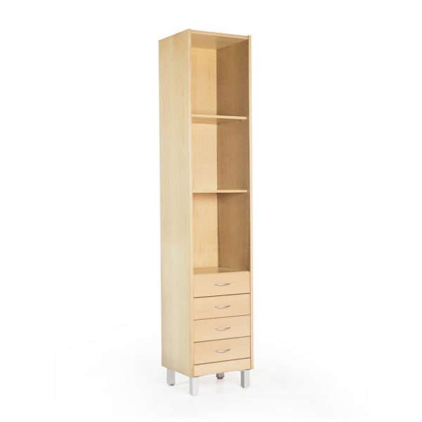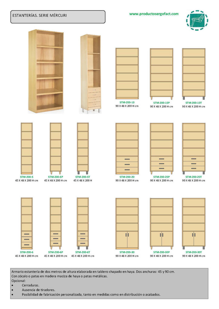 Armario estantería de dos metros de altura elaborada en tablero chapado en haya. Dos anchuras: 45 y 90 cm.
