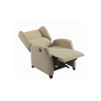 Sillón ergonómico orejero abatible y bipedestador, de accionamiento eléctrico mediante mando por cable. Respaldo y reposapiés independientes (el reposapiés se extrae en cualquiera que sea la posición del respaldo, lo que posibilita permanecer en posición de sentado con el reposapiés elevado). Con patas.