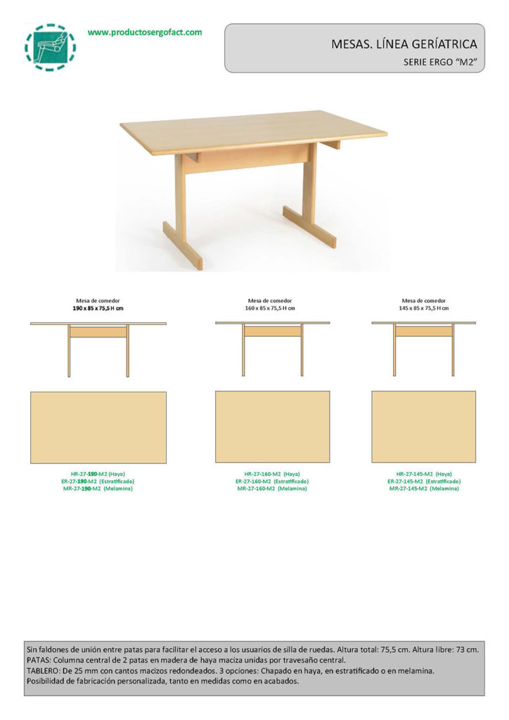- Sin faldones de unión entre patas para facilitar el acceso a los usuarios de silla de ruedas. Altura total: 75,5 cm. Altura libre: 73 cm.