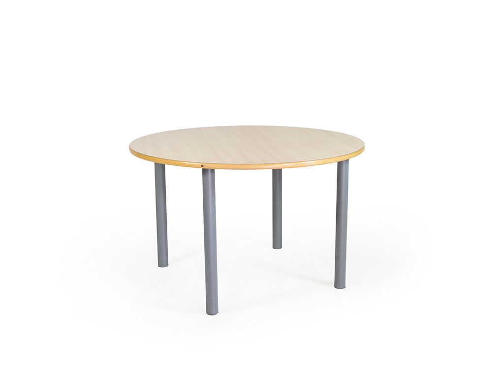 Mesas de 4 patas metálicas con sección circular.