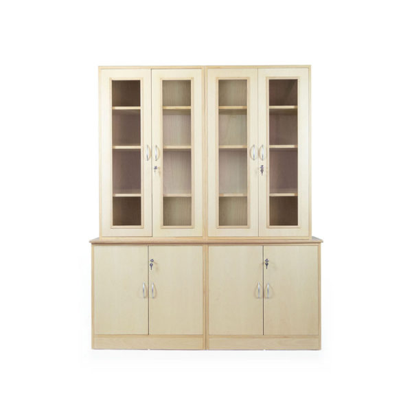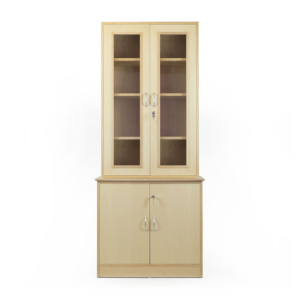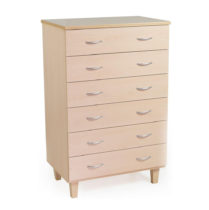 Aparador de 195 cm de altura. Elaborado en tablero chapado en haya. Tapa chapada en estratificado con cantos macizos en haya.