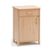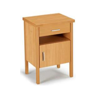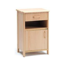 Mesilla fabricada en tablero chapado en haya. Tapa chapada en estratificado con cantos macizos en haya.