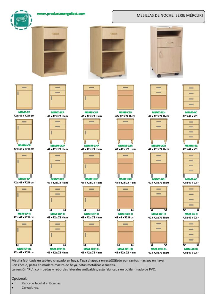 Con zócalo, patas en madera maciza de haya, patas metálicas o ruedas.